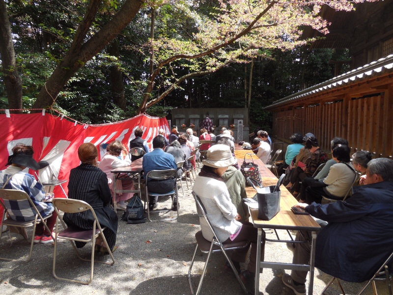 サクラの花の咲く頃に一年に一度、祭典を行うことになり、今年は4月5日に神事が行われました。残念ながらサクラの花の時季は過ぎていましたが、たくさんの皆様にご参列いただきました。